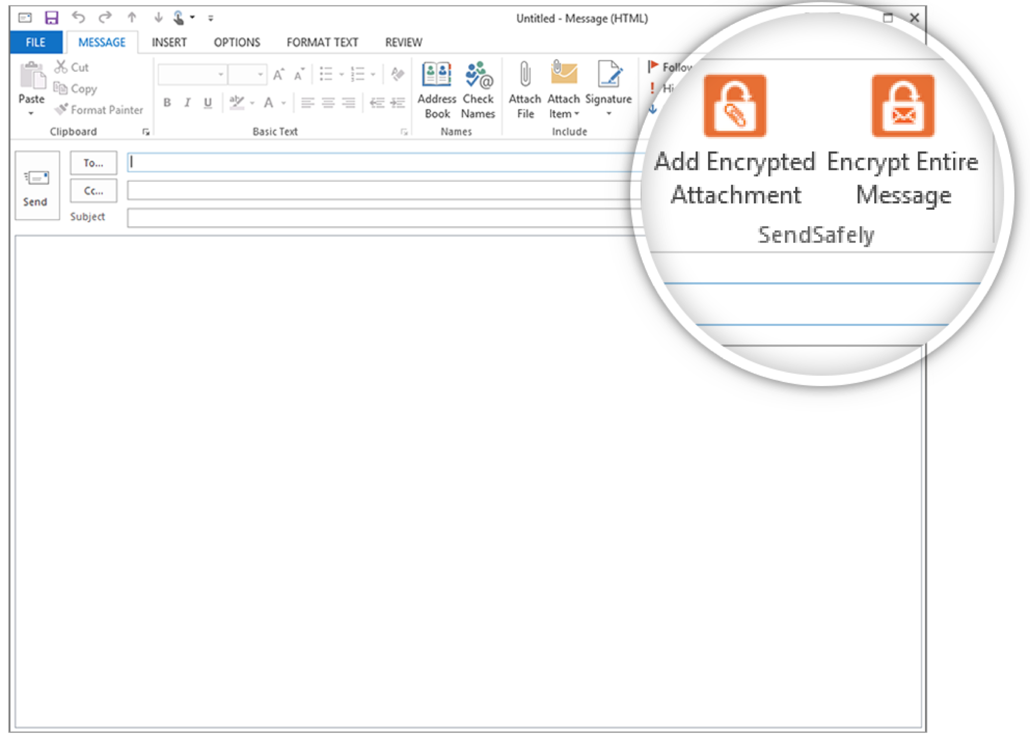 The SendSafely Outlook Plug-in lets you send encrypted files and email messages directly from Outlook and Office 365 with just the click of a button. Sending an encrypted file is just like sending a normal file attachment.